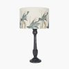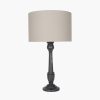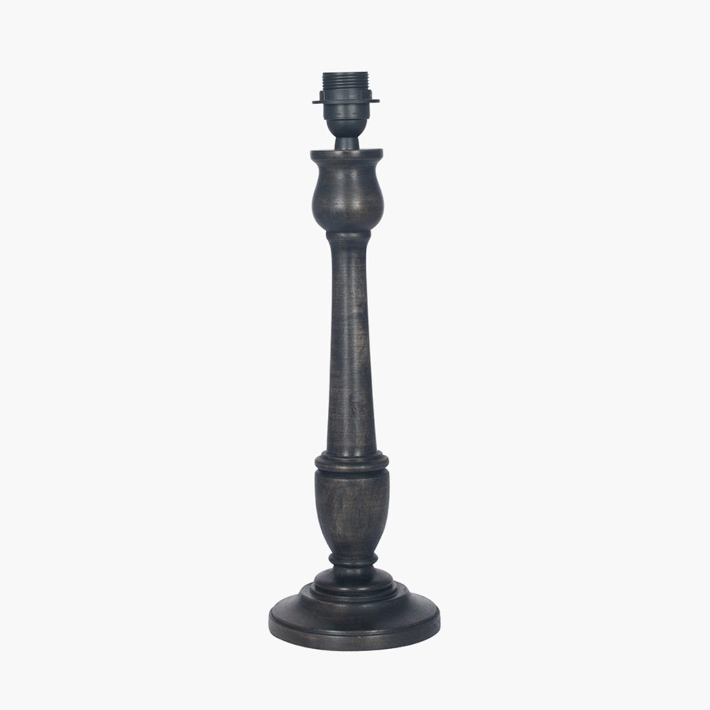 Finished in antique black this slim mango wood turned table lamp is a stylish light source solution. Allow the wood to do the talking with a plain textured shade.