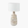 A beautifully tall and elegant wooden lamp base with scandi styling and tactile finish. The lamp base is in a subtle white wash with a hand crafted etched design.