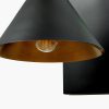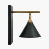 Make a statement with this matt black and antique brass metal wall light. The conically shaped shade is hinged so you can direct the light and the striking design really is a work of art.