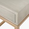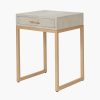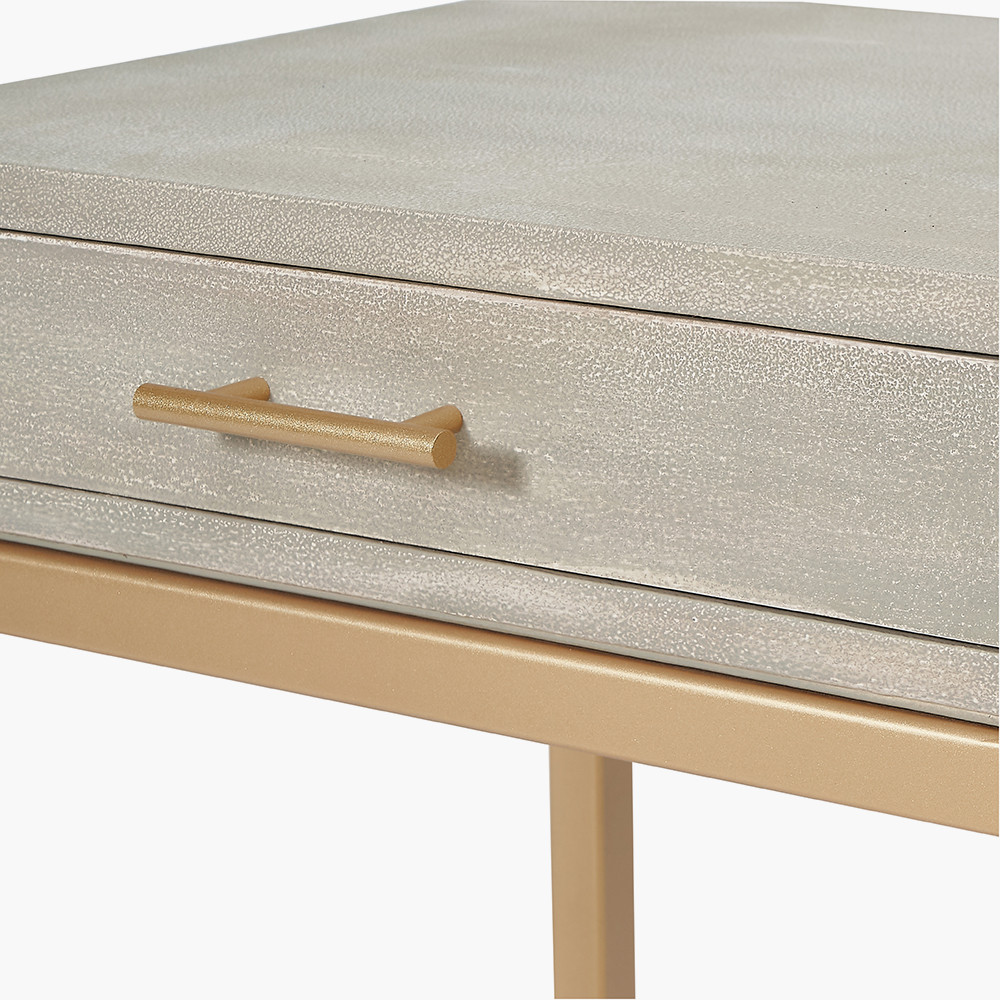 The Ambroso side table is just as comfortable being used as a bedside table or occasional table in a lounge or hallway. Finished in a soft grey and with faux shagreen effect texture, this range of furniture is simply beautiful. Accented with champagne gold legs and handles, this side table has one drawer for storage.