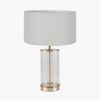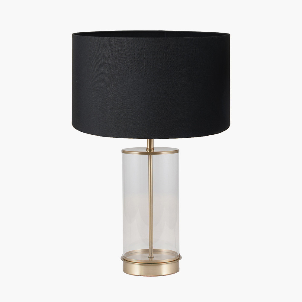 This pretty glass table lamp base, in crisp clear glass with contrasting champagne metalwork, will bring classic elegance to any room, complemented with a simple, modern ivory or black cylinder lamp shade.