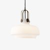 Space Copenhagen’s ambition was to design a lamp with a simple industrial feel, but which was still elegant and poetic. The Copenhagen Pendant is an exercise in contrasts. Combining the classic and the modern, the maritime and the industrial. Opal Glass with Bronzed Brass finish.