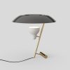 The table lamp designed in 1951 is a study in balance and light reflection through a screen, a recurring theme in Gino Sarfatti’s work. Model 548 provides both reflected and diffused light due to the adjustable spotlight that is directed up towards a reflecting screen.