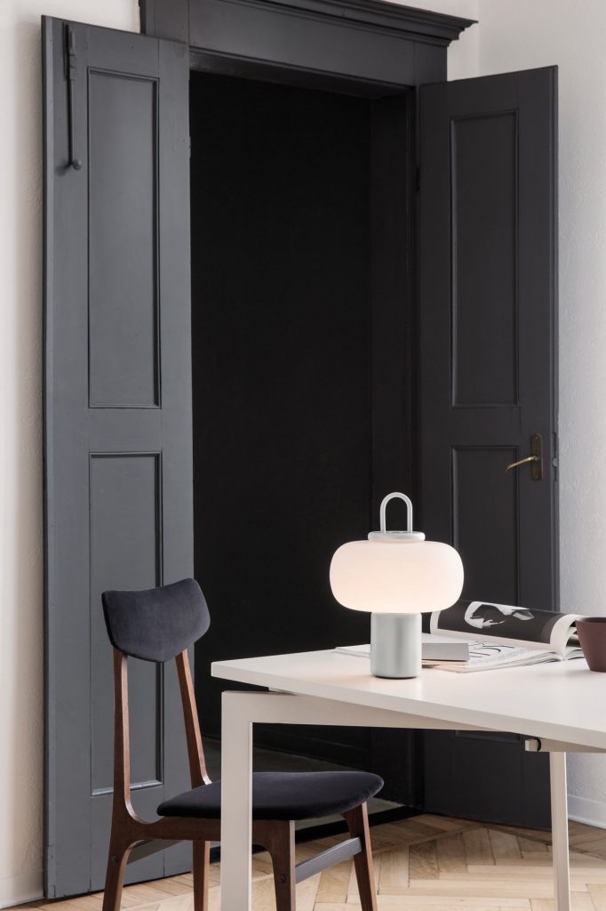 Featuring a touch dimmer, Nox can provide ample light for reading and a cosy soft light when dimmed. Ideal as a bedside lamp, Nox can be picked up and carried to the balcony, and with its rich materials it also seems perfectly at home on the dinner table.