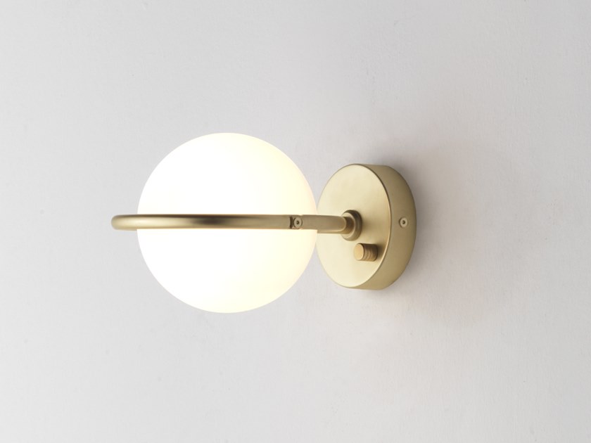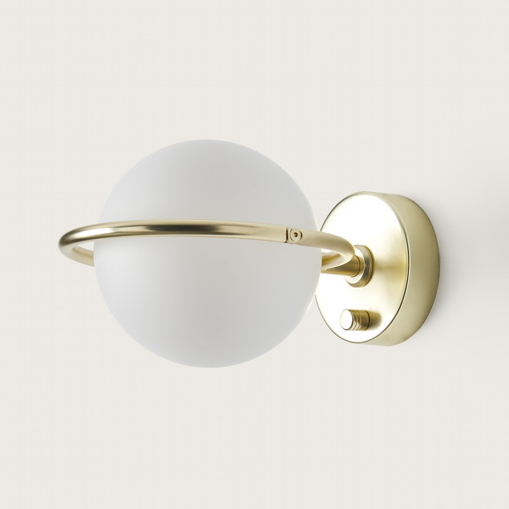 Abbacus is a metal wall lamp with blown opal glass, designed by Pepe Fornas for Aromas del Campo. Available in Matt Brass or Matt Black finishes. Bulb included. Switch on base.