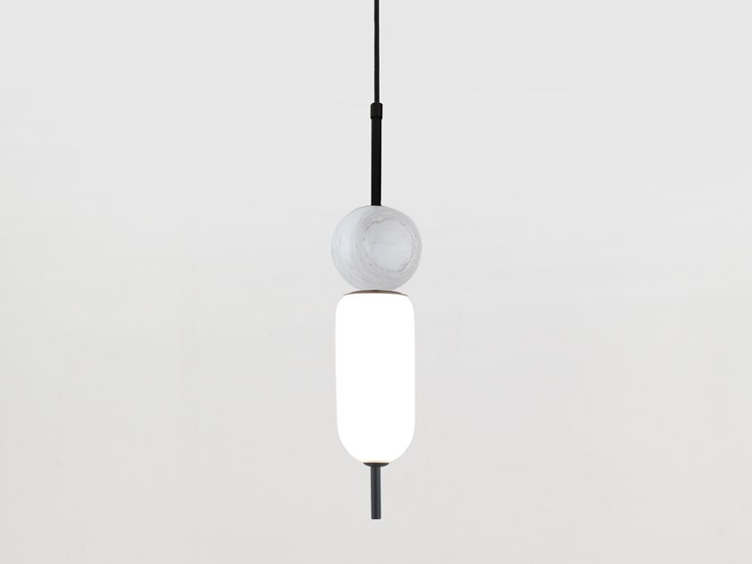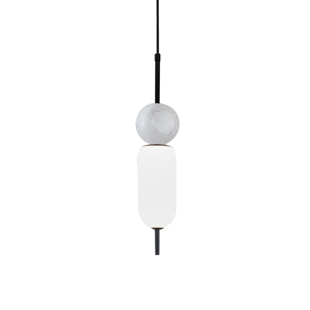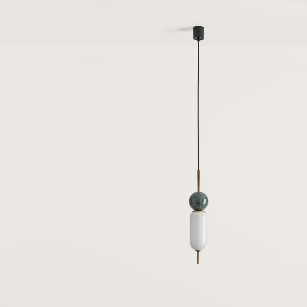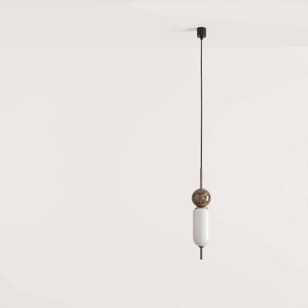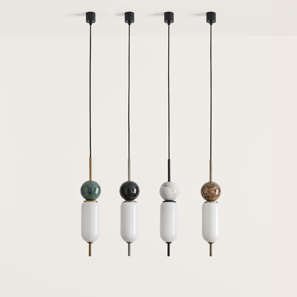 Anet Opal Glass LED pendant in Matt Black/White Marble, Aged Gold/Green Marble or Bronze/Brown Marble.