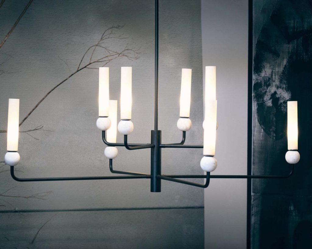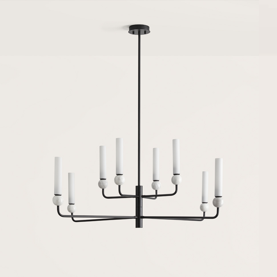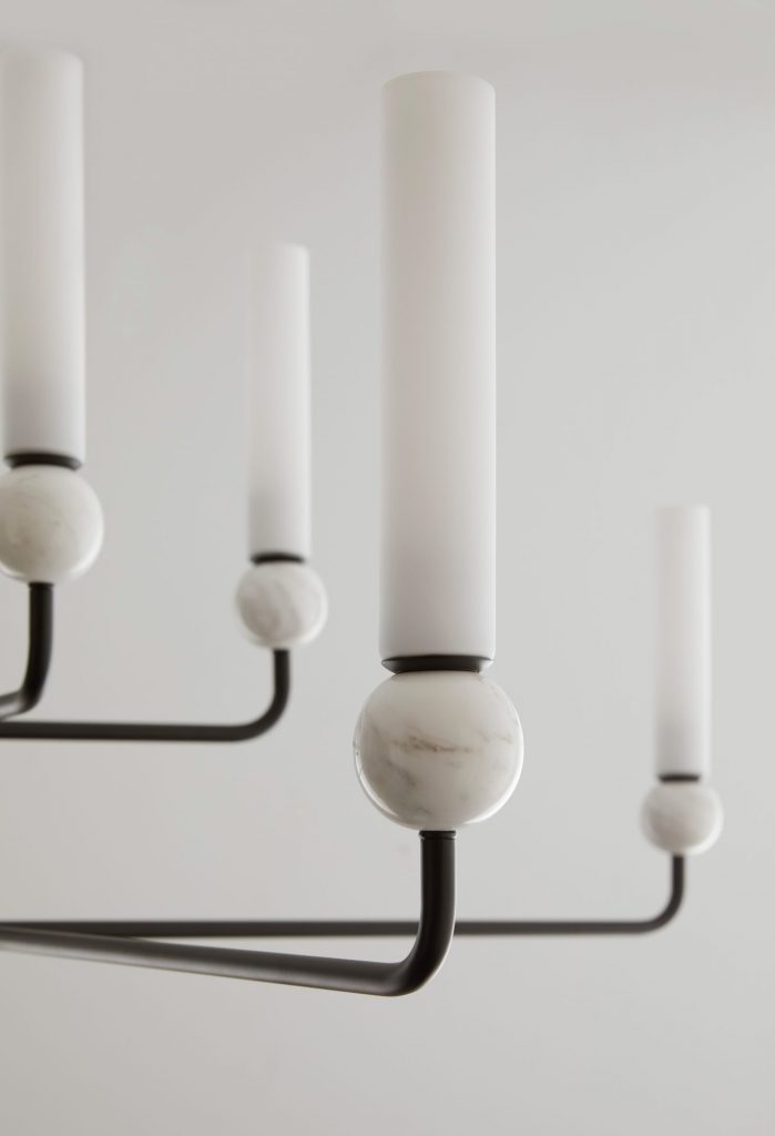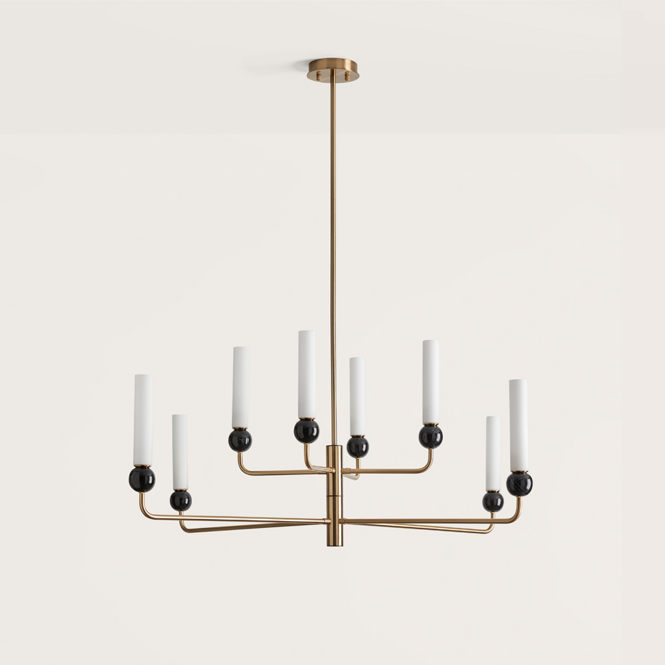 Delie ceiling light in Aged Gold with Black Marble or Matt Black with White Marble.