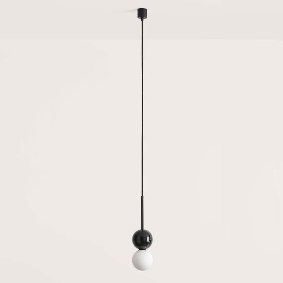 Dalt ceiling pendant in Matt Black with Black Marble and Opal Glass Shade.