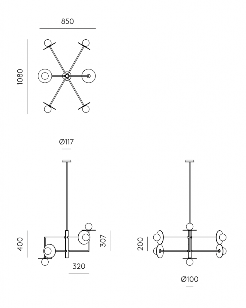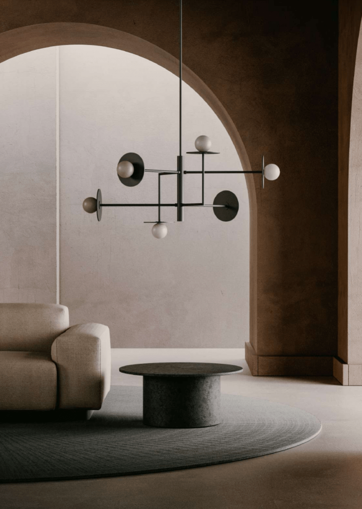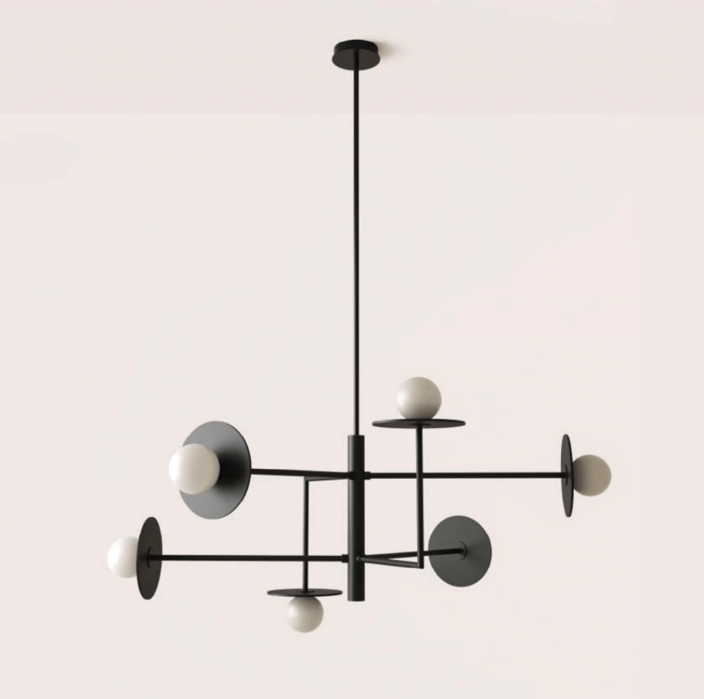 Miron ceiling light in Matt Black with Opal blown glass shades.