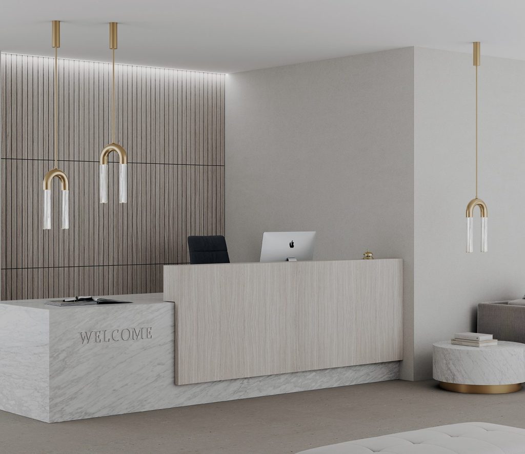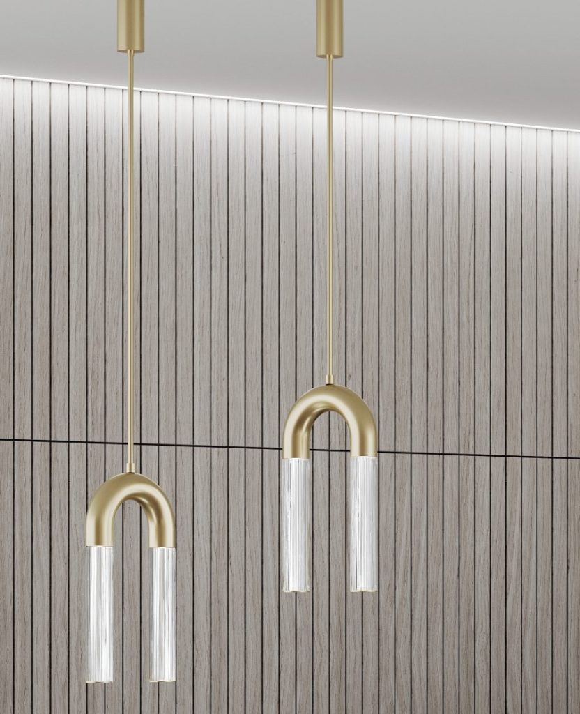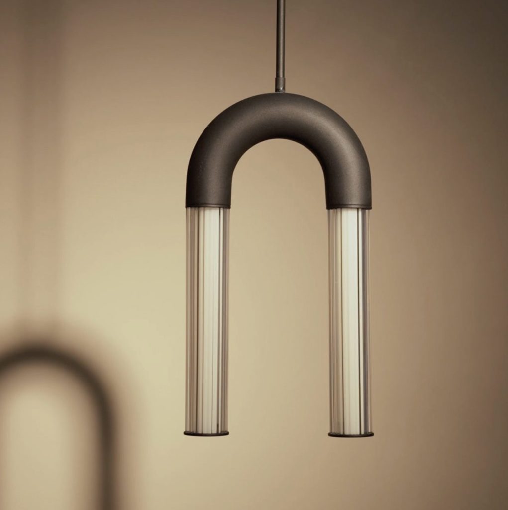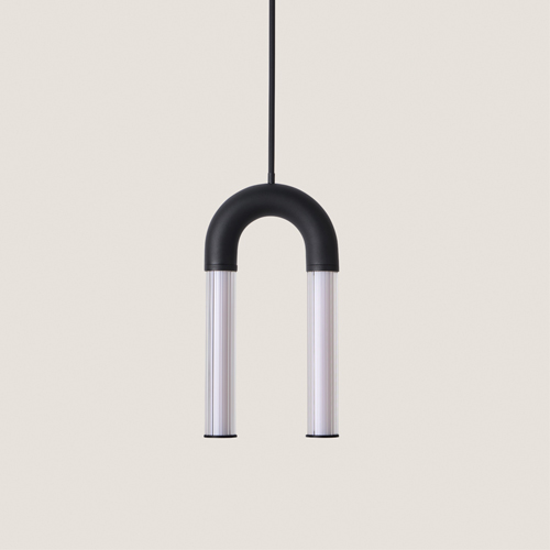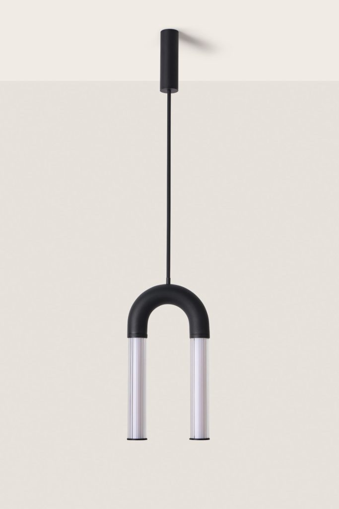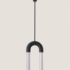 Iman pendant in Textured Matt Black or Aged Gold with transparent striped glass.