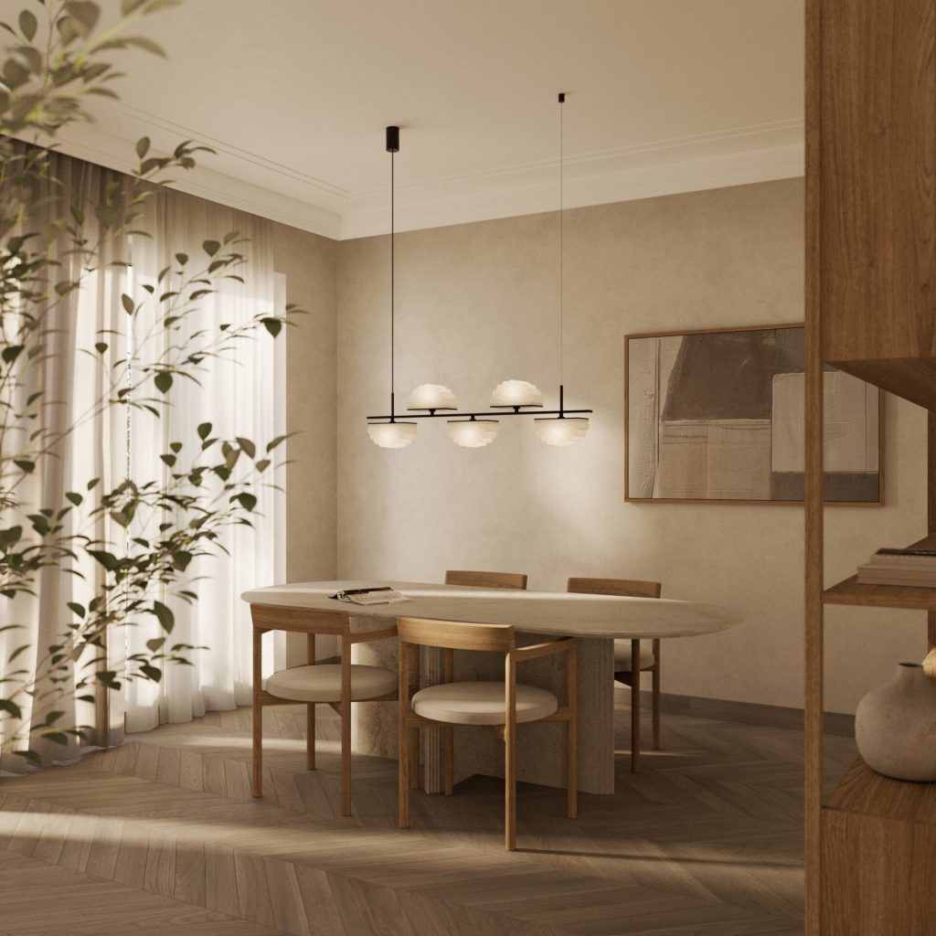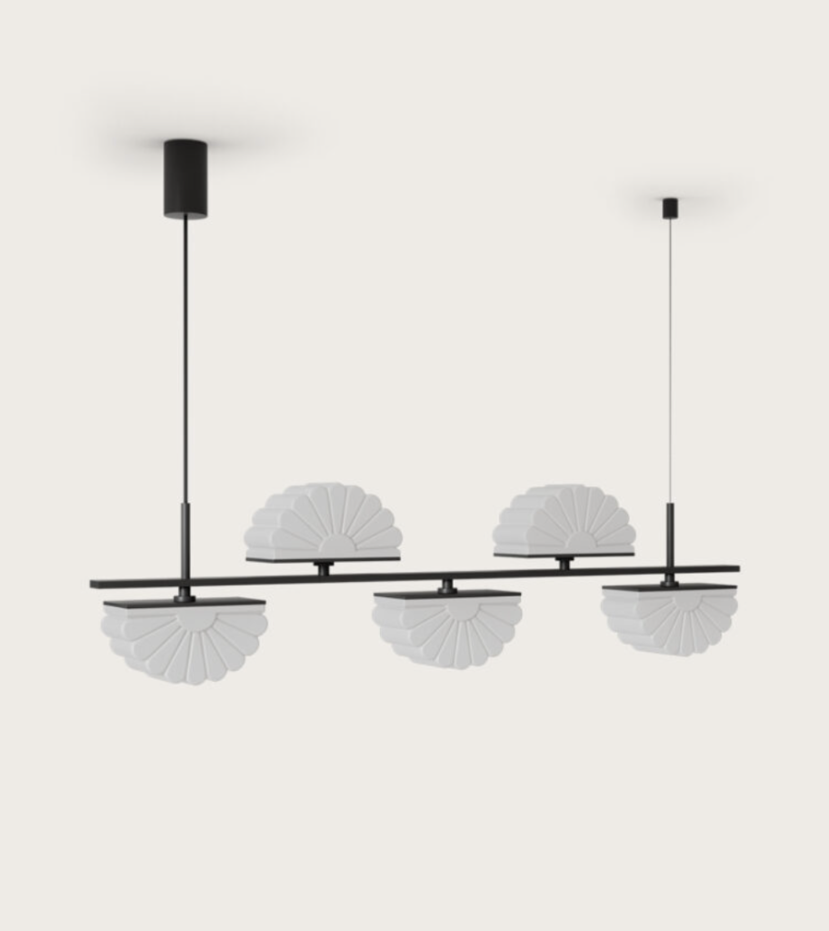 Gina 5 light pendant in Matt Black with Opal Glass.