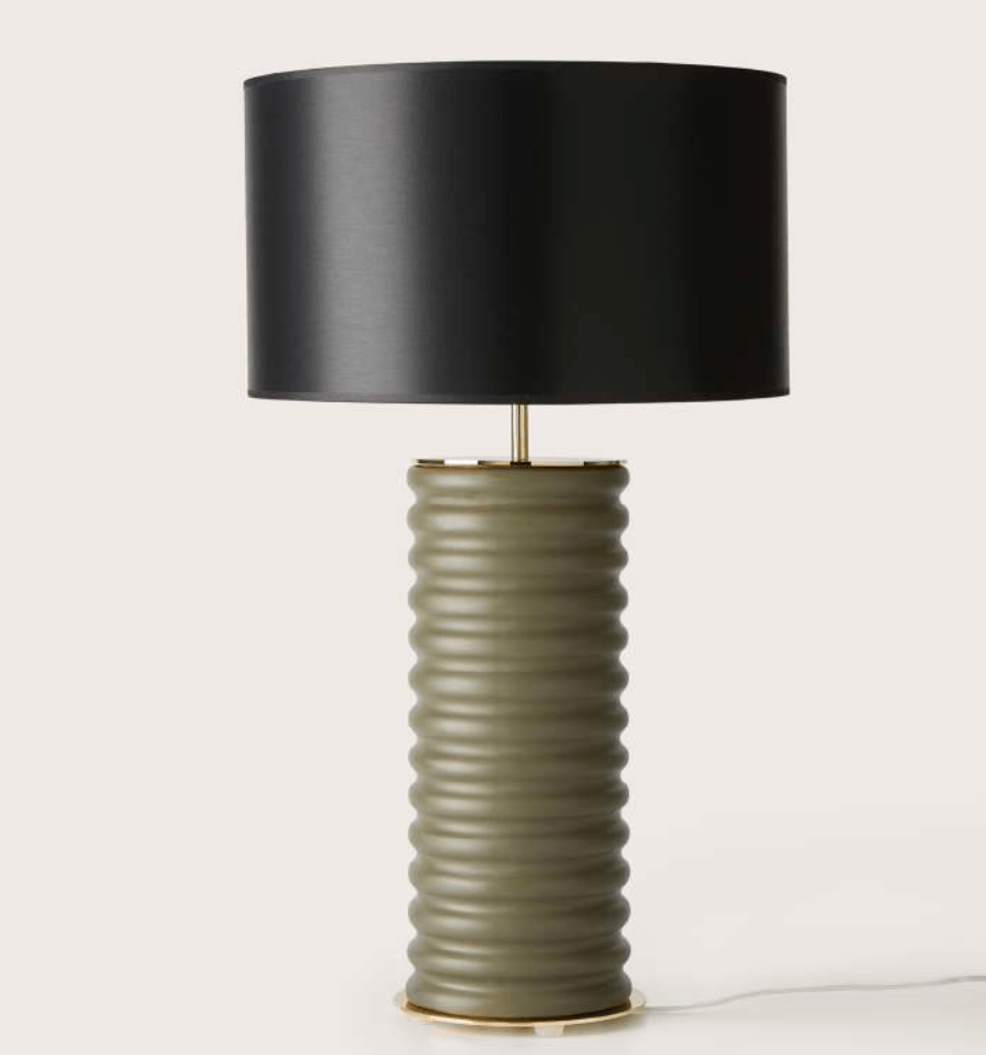 Taro table lamp in Matt Brass/Shiny Gold and Green Leaf Ceramic.