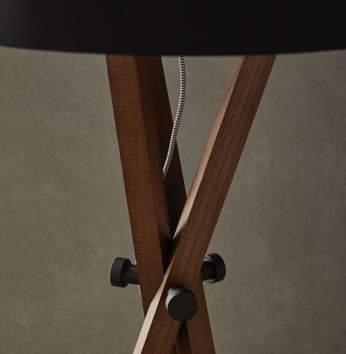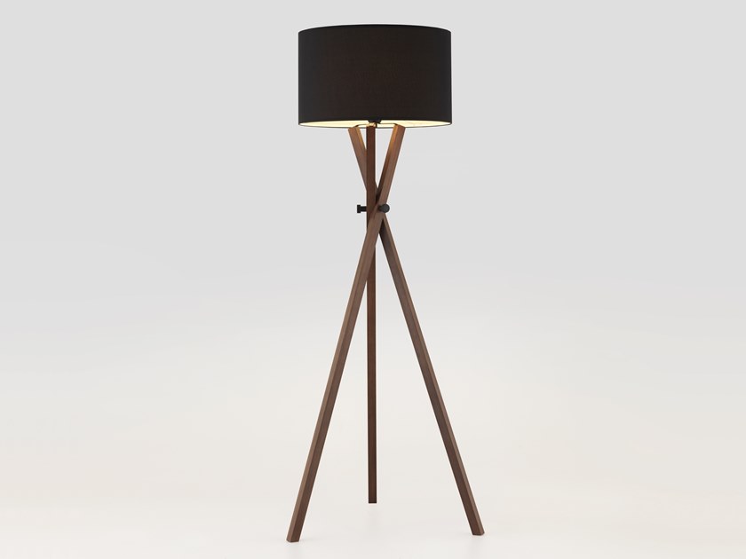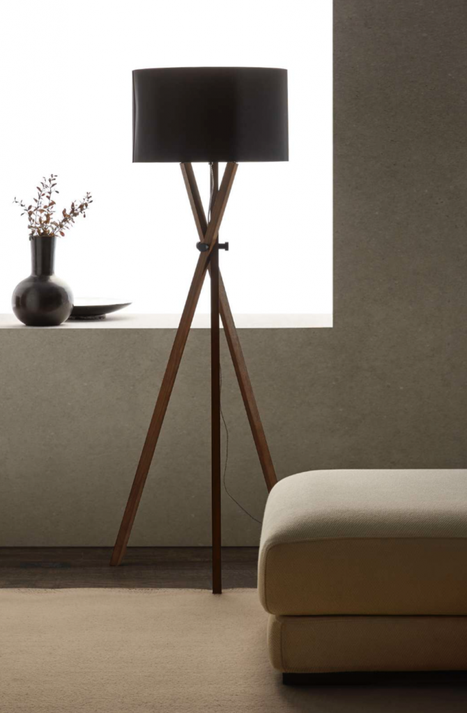 COT floor lamp in Walnut Wood with Black or White Shade.