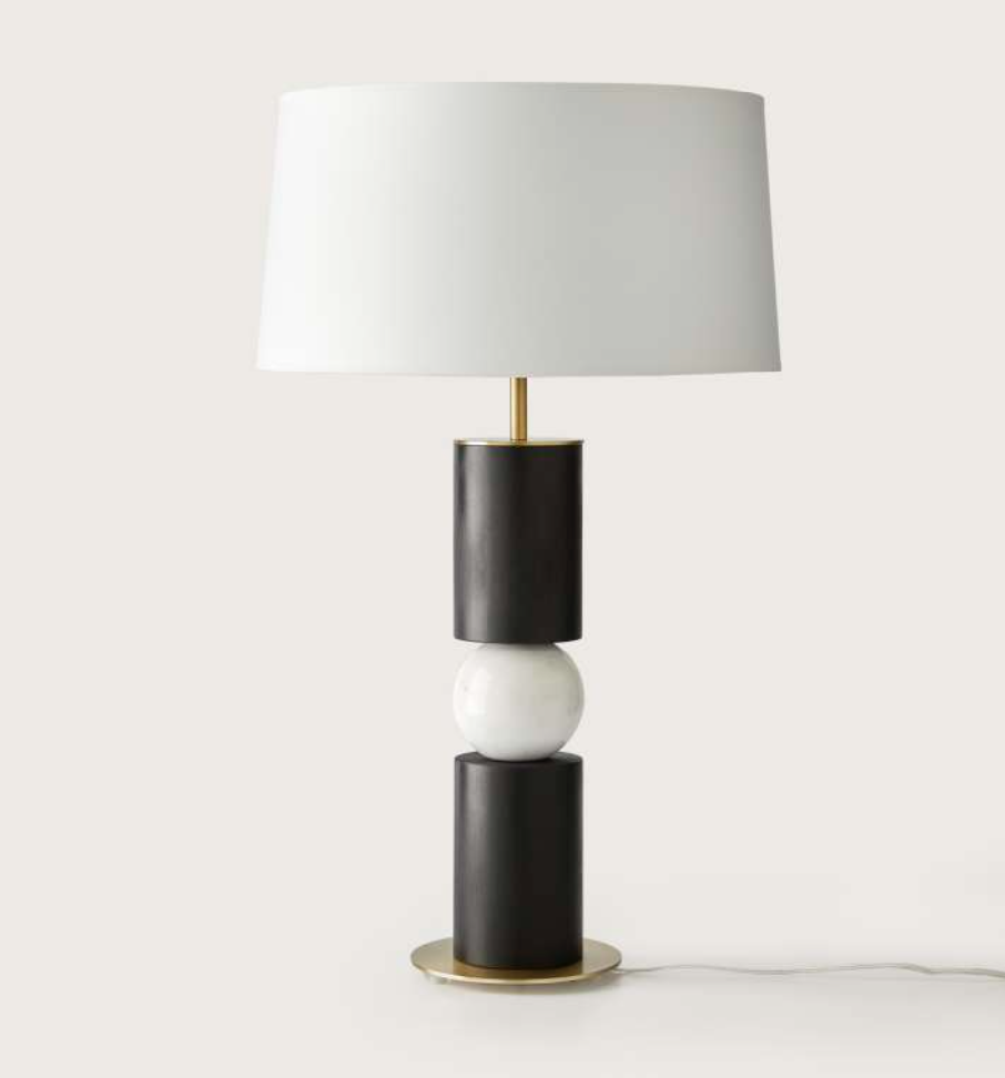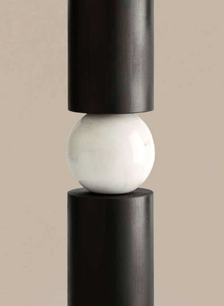 Alda table lamp base in Matt Brass with Black Wood and White Marble.