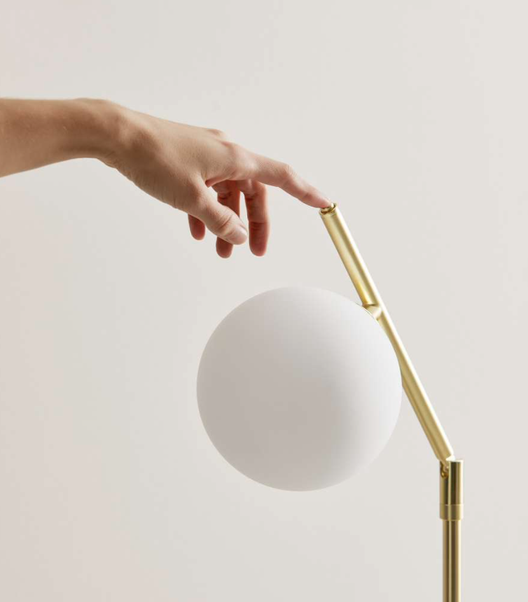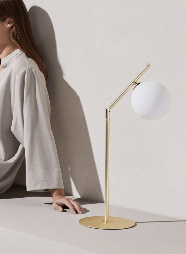 Endo table lamp in Matt Brass with Opal Glass. Bulb included.