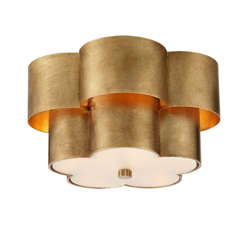 Arabelle Flush Mount in Burnished Silver Leaf or Gild with Frosted Acrylic.