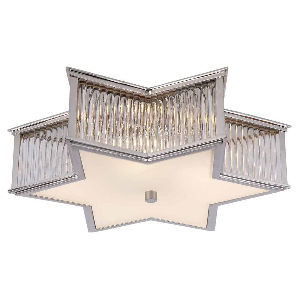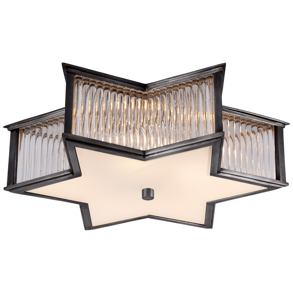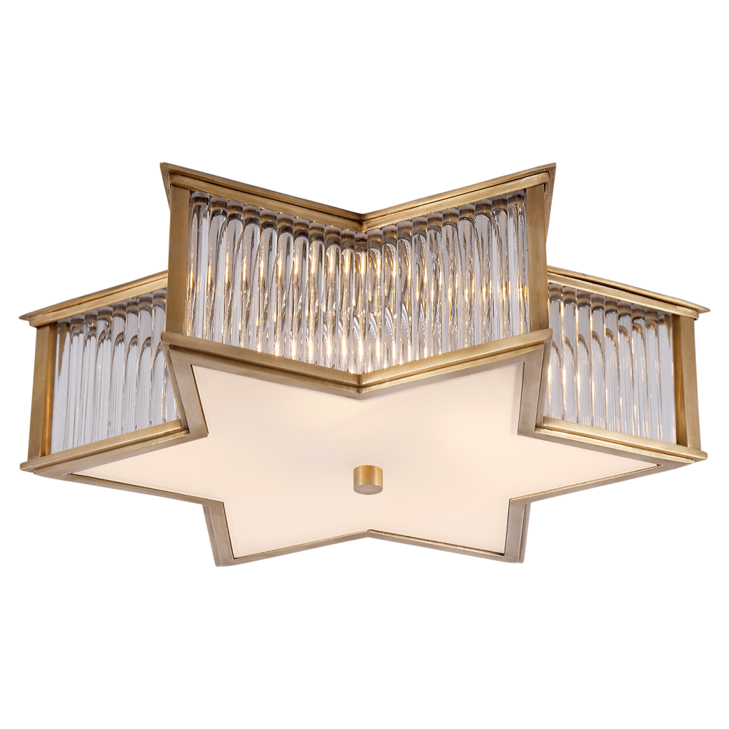 Sophia Large Flush Mount. Available in Gun Metal, Natural Brass or Polished Nickel with the option of clear glass rods.