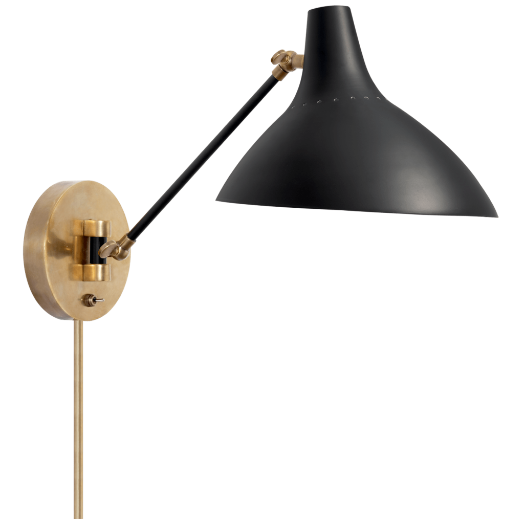 Charlton Wall Light in hand-rubbed antique brass. Shade options available.