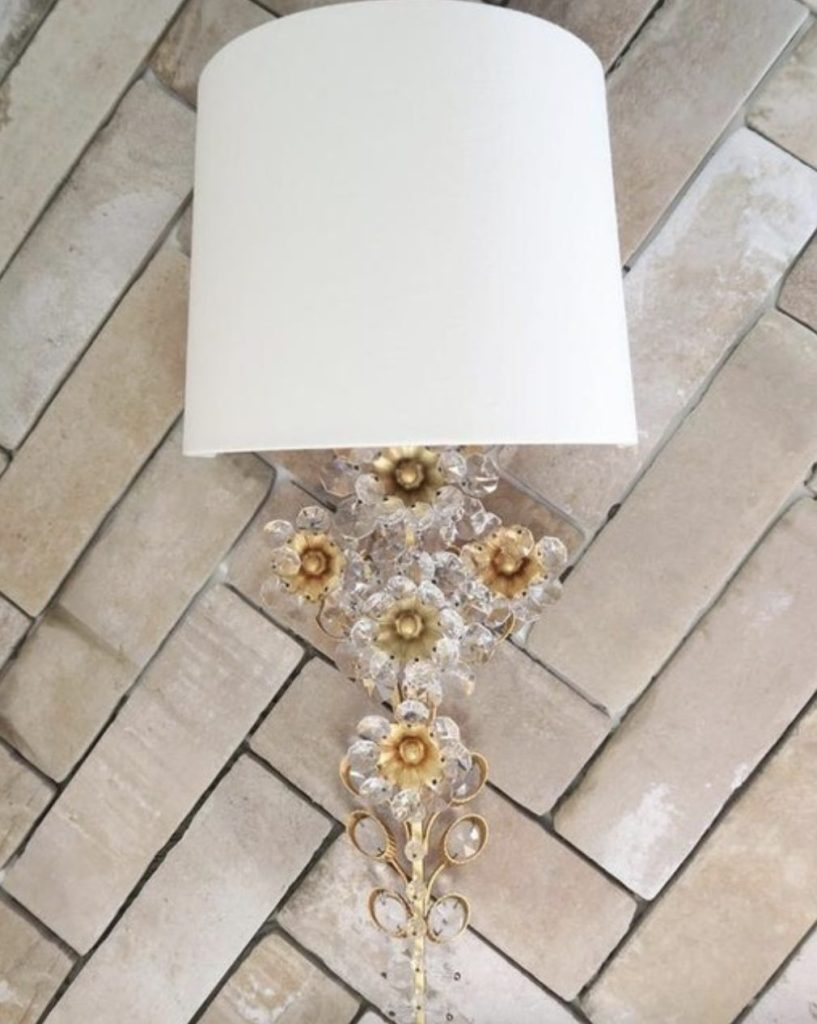 Claret Tail Sconce in Gild with Linen Shade.