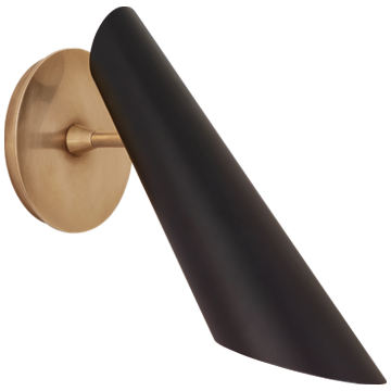 Franca Pivoting Shade Sconce in Hand-Rubbed Antique Brass with Black Shade.