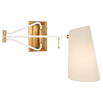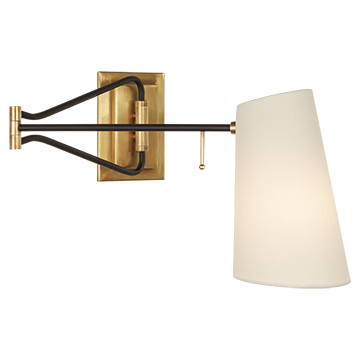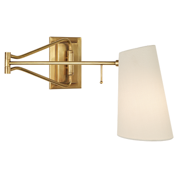 Keil Swing Arm Wall Light in Hand-Rubbed Antique Brass with Linen Shade. Arm finish options available.