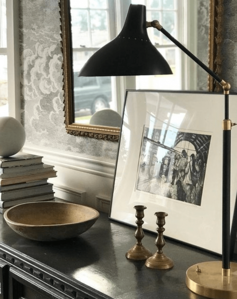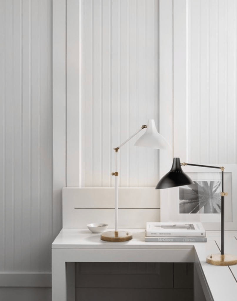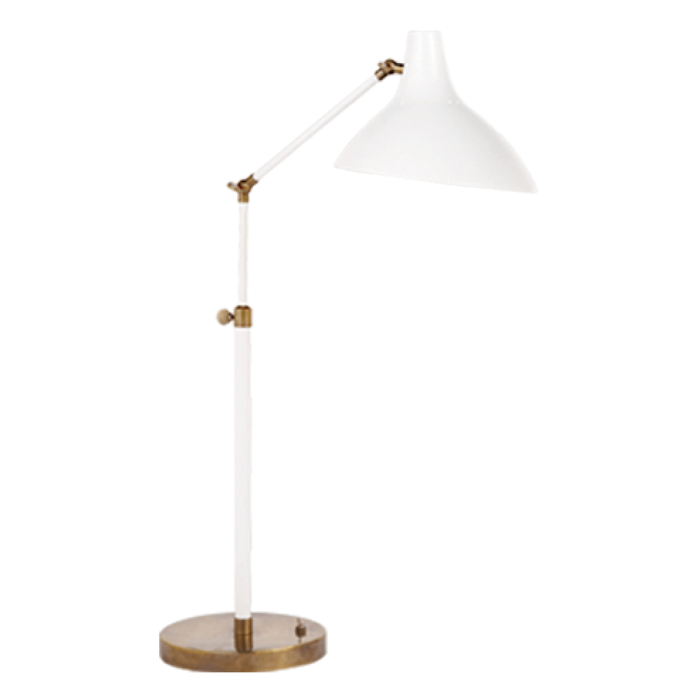 Charlton Table Lamp in Black or White Hand-Rubbed Antique Brass.