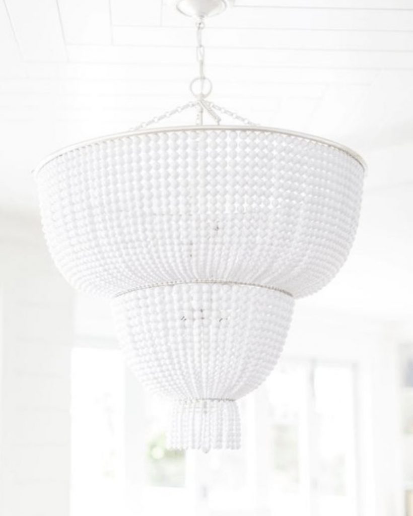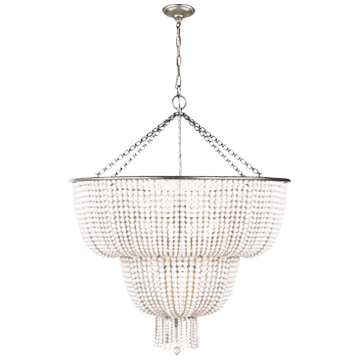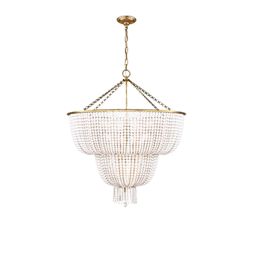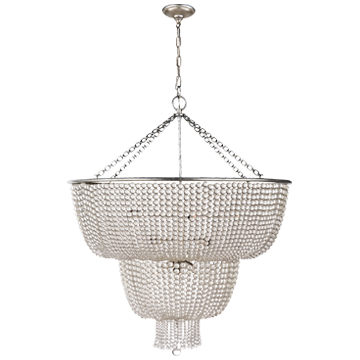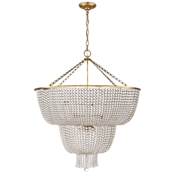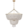 Jacqueline Two-Tier Chandelier in Hand-Rubbed Antique Brass or Burnished Silver Leaf with White Acrylic Glass or Clear Glass.