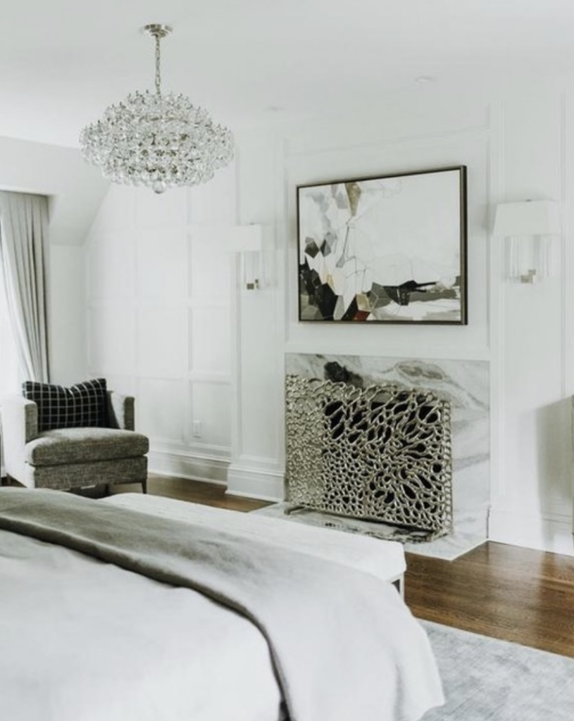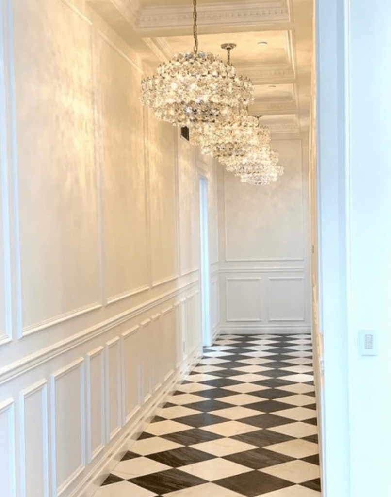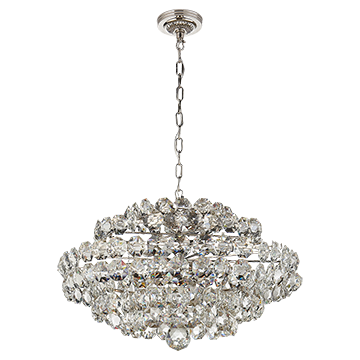 Sanger Small Chandelier in Polished Nickel with Crystal finish.
