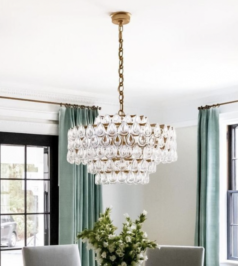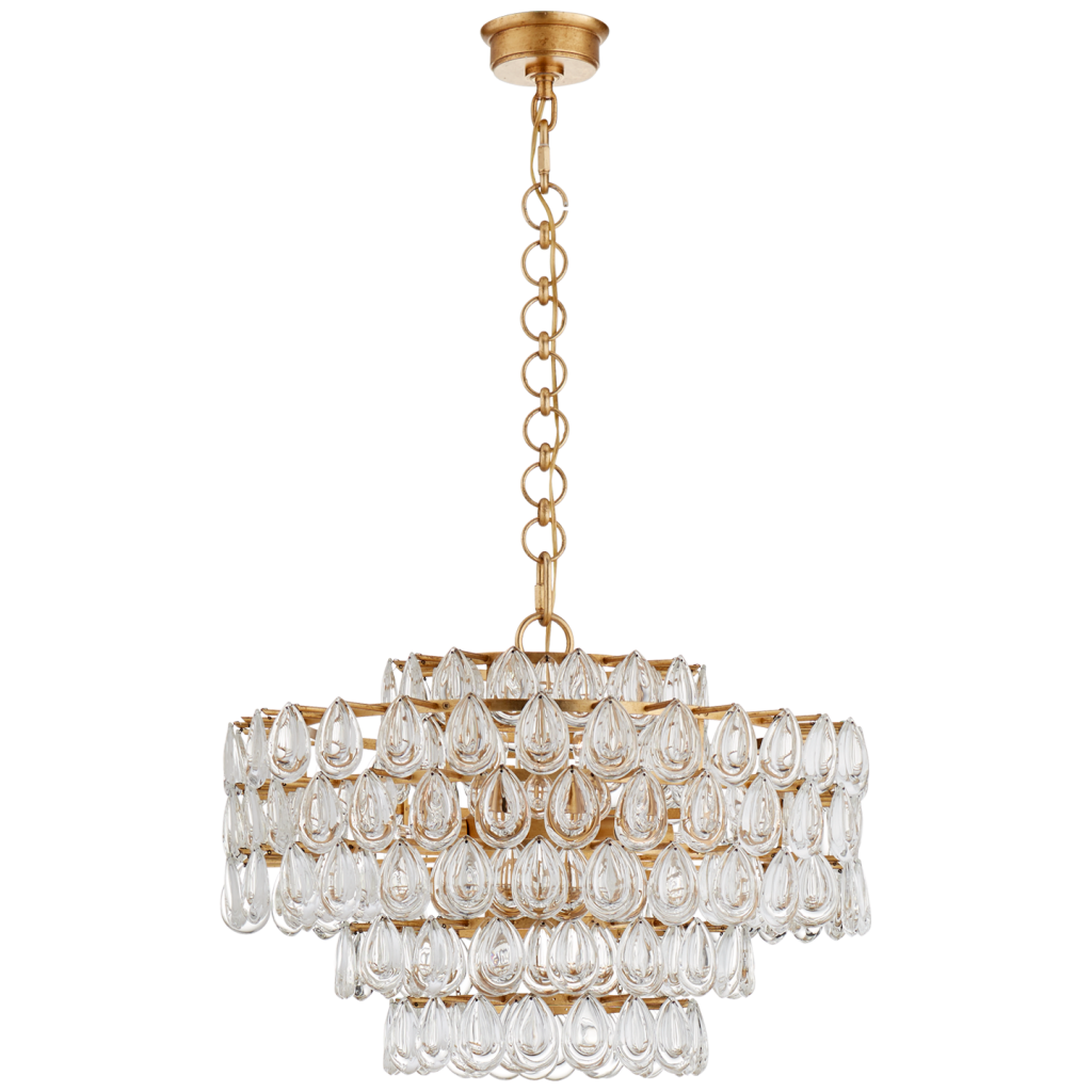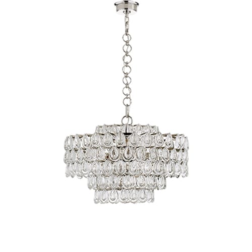 Liscia Chandelier in Polished Nickel or Gild with Crystal.