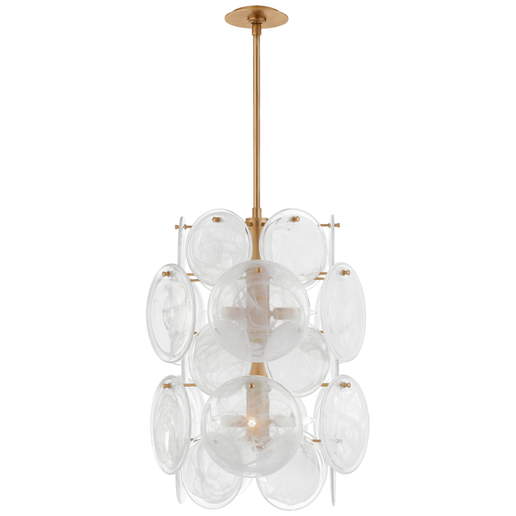 Loire Medium Barrel Chandelier in Gild with White Strie Glass.