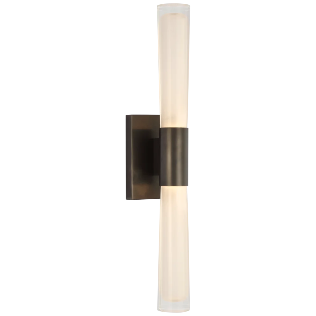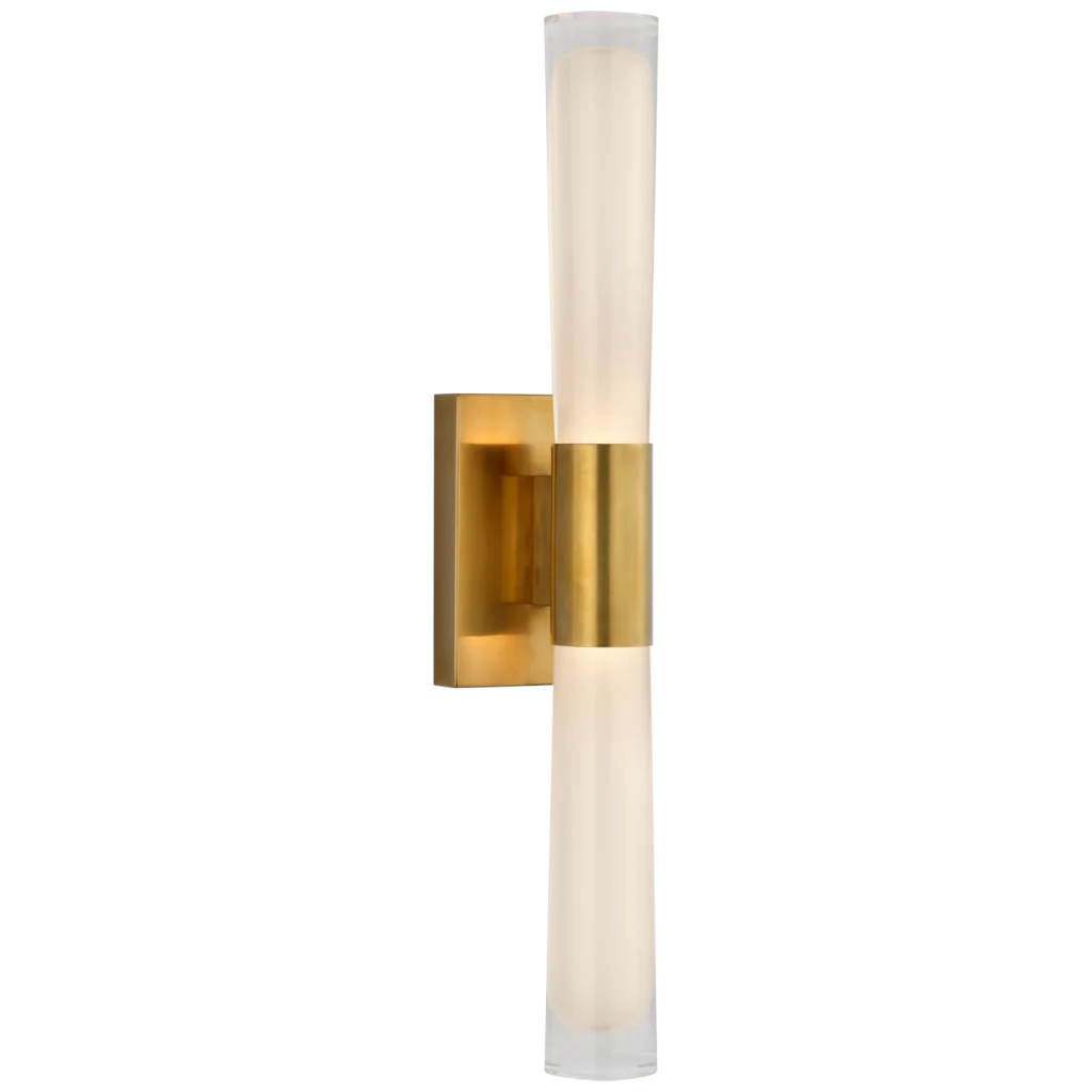 Brenta Single Sconce in Hand-Rubbed Antique Brass or Bronze with White Glass.