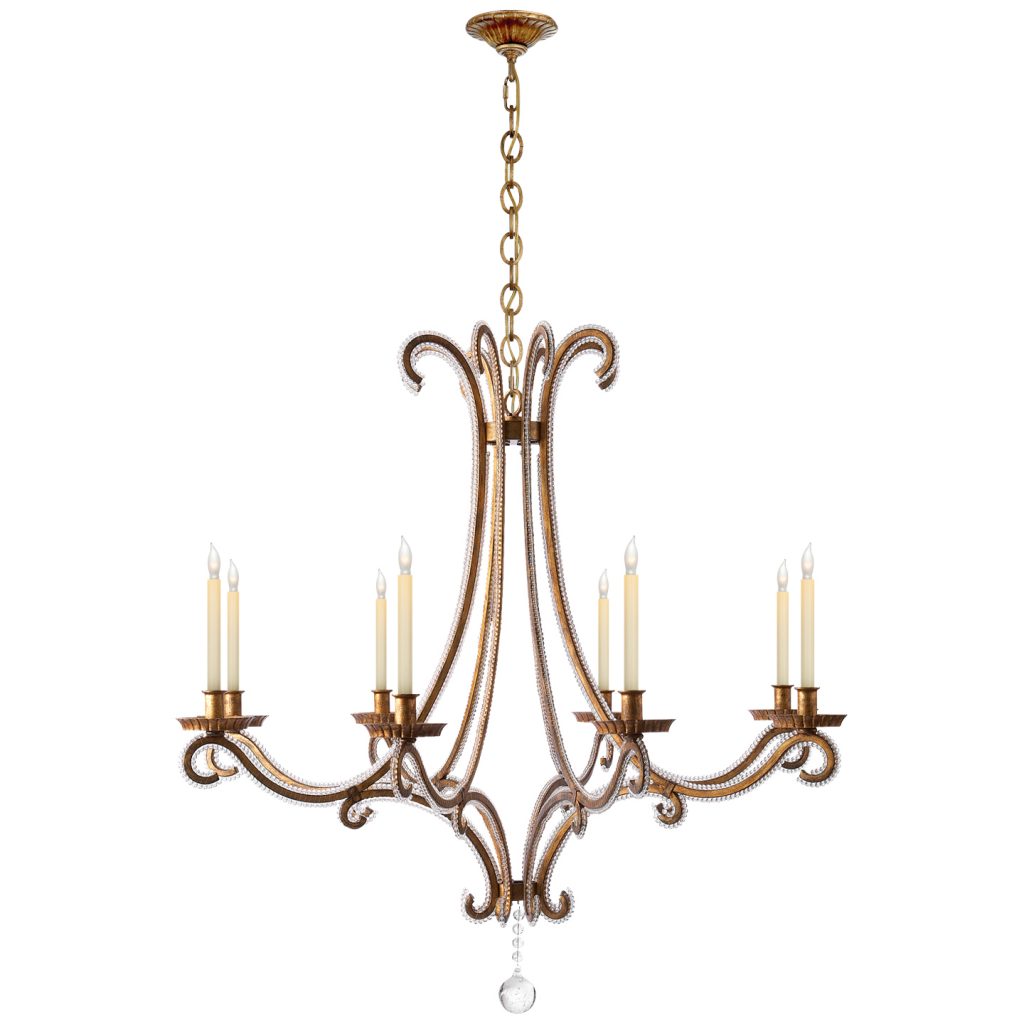 Oslo Large Chandelier in Gilded Iron with Crystal.