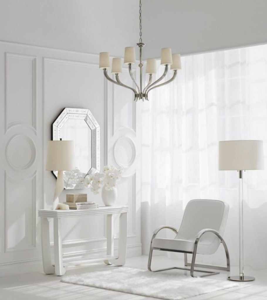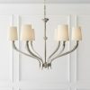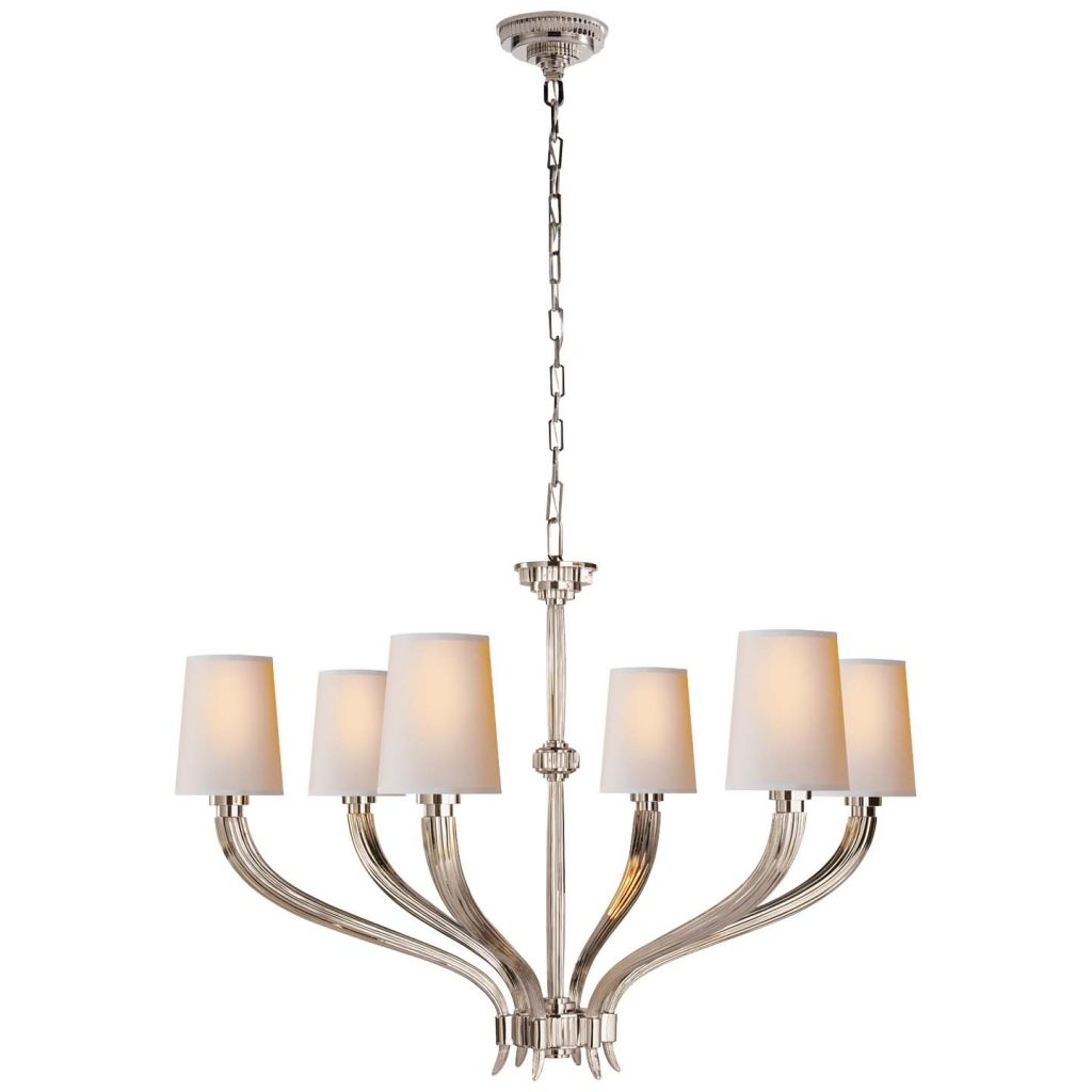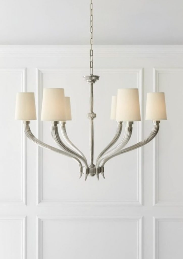 Large Ruhlmann Chandelier with Linen Shades. Choose finish.