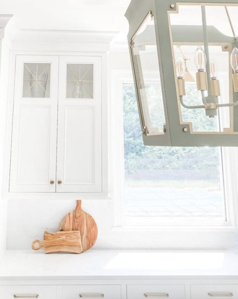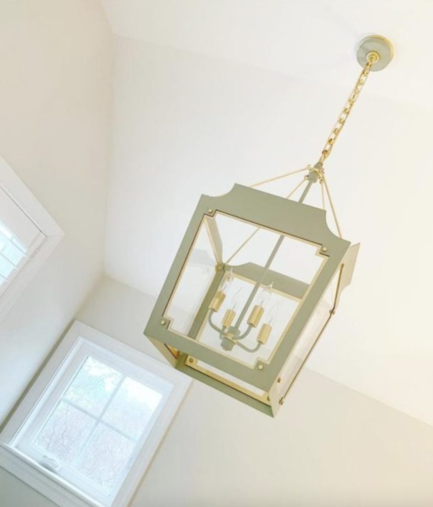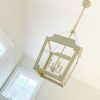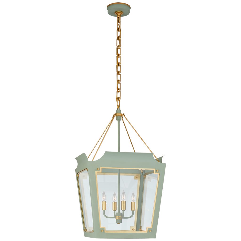 Caddo Medium Lantern in Celadon and Gild with Clear Glass.
