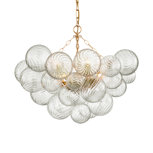 Talia Medium Chandelier in Gild and Clear Swirled Glass.