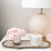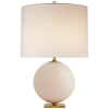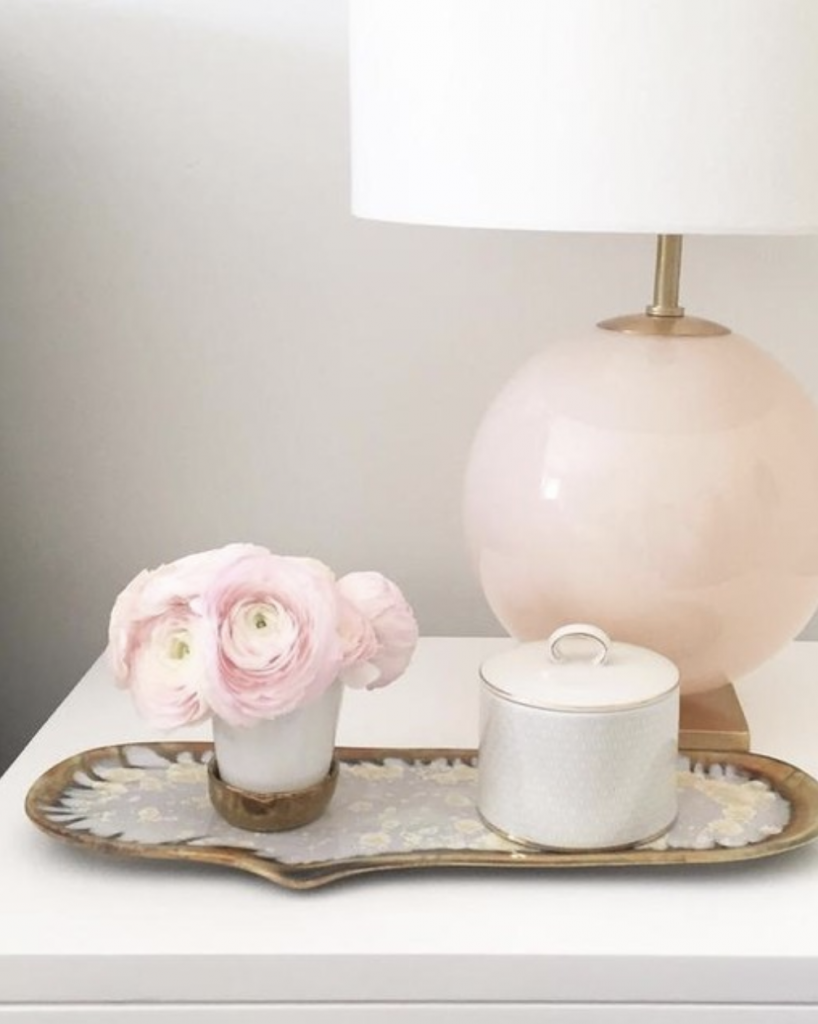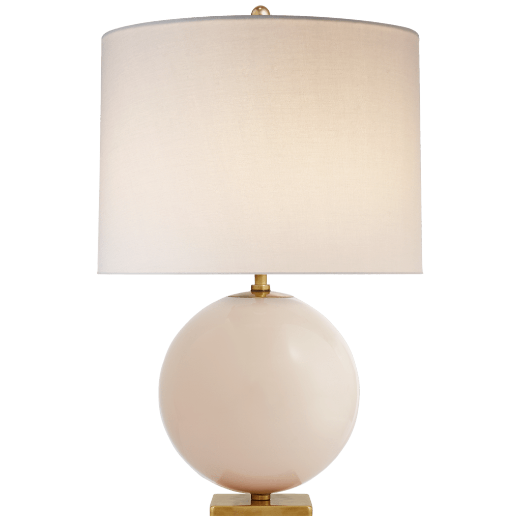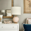 Elsie Table Lamp in Blush Painted Glass with Cream Linen Shade.