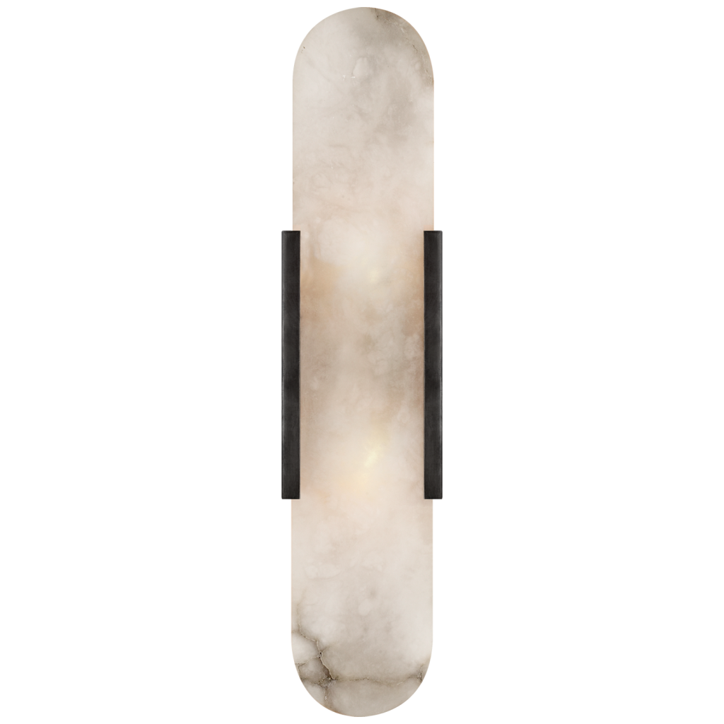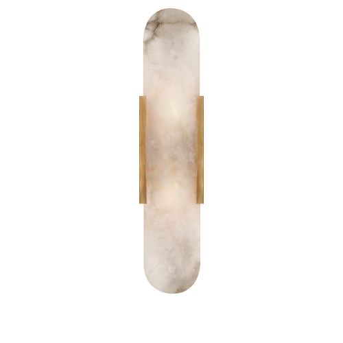 Melange Elongated Sconce in Antique-Burnished Brass or Bronze with Alabaster.
