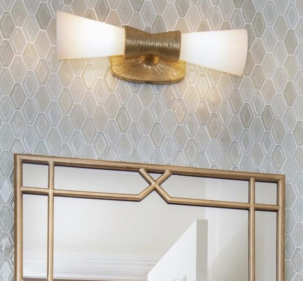 Utopia Small Double Bath Sconce in Gild with White Glass.