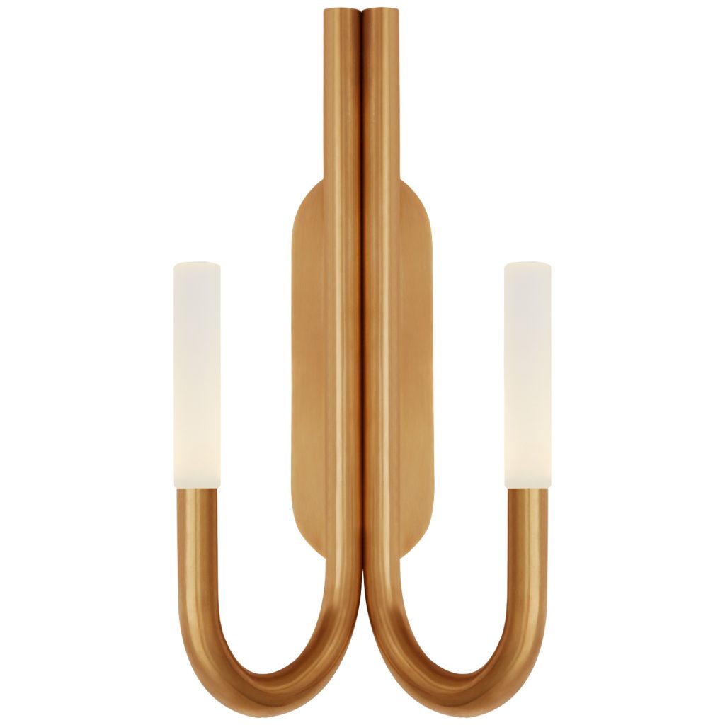 Rousseau Double Wall Sconce in Antique-Burnished Brass with Etched Crystal.