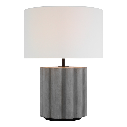 Scioto Medium Table Lamp in Oyster Stained Concrete with Linen Shade.