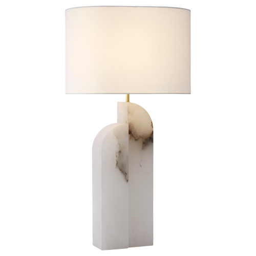 Savoye Large Left Table Lamp in Alabaster with Linen Shade.