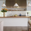 Cleo Pendant in Antique-Burnished Brass and Antique White with Frosted Acrylic.