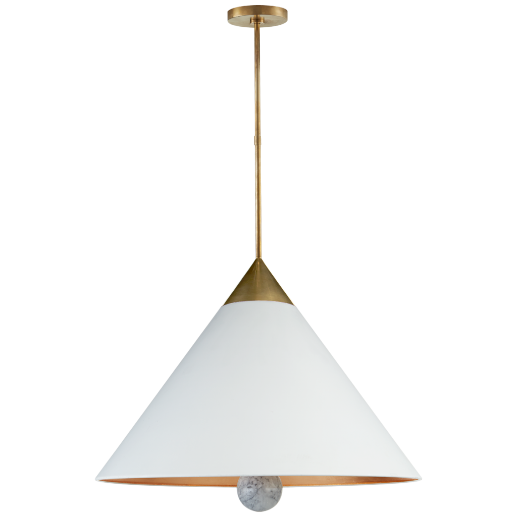 Cleo Large Pendant in Antique-Burnished Brass and White Marble with White Shade with Gild Interior.