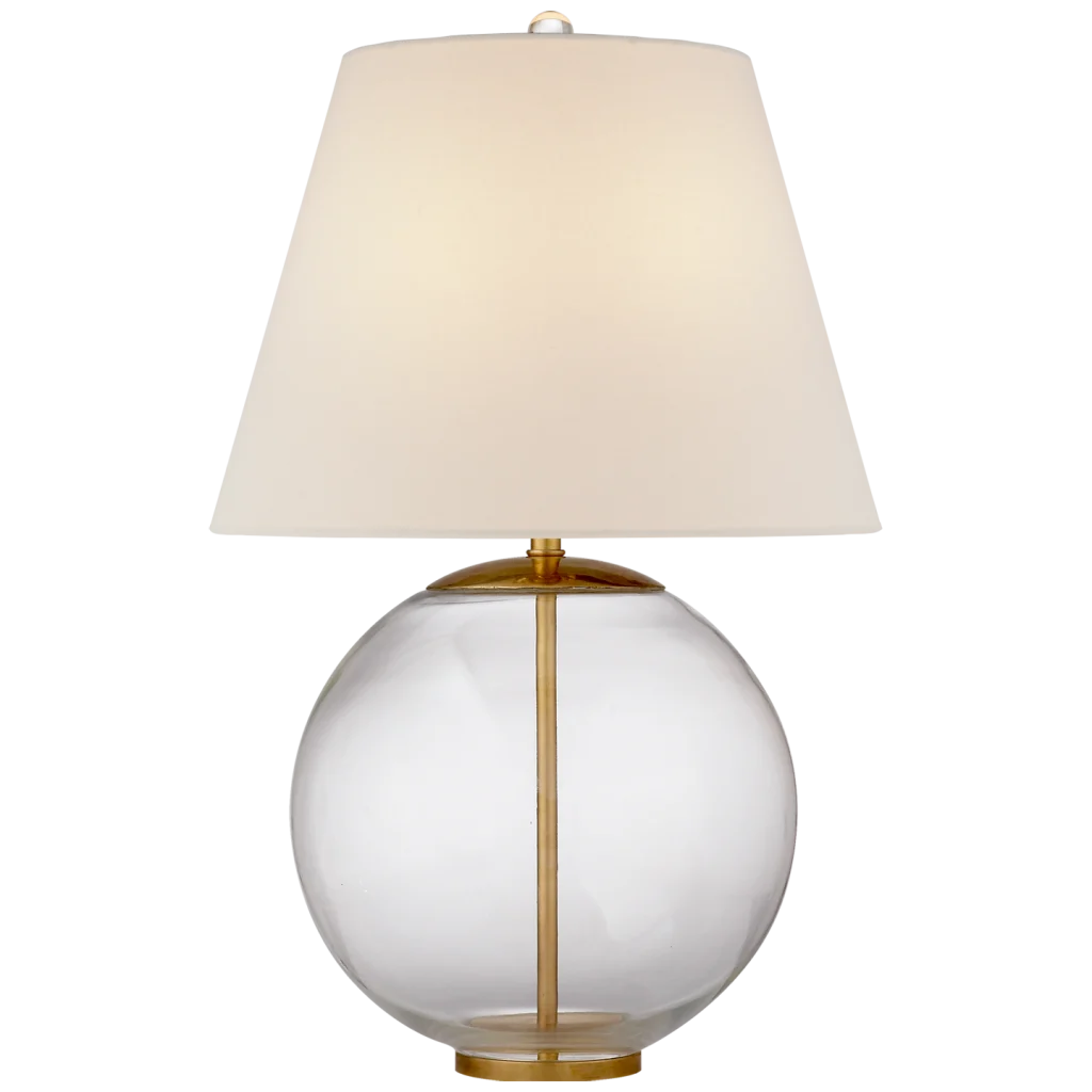 The Morton by AERIN provides an elegant balance for traditional and modern spaces. The globe-base design comes in clear glass, and will enhance any living room end table as a matching set or on its own.
