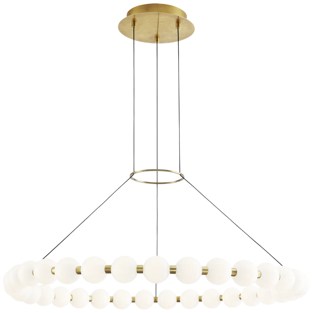 Orbet 36 Chandelier in Natural Brass with Frosted Glass.
