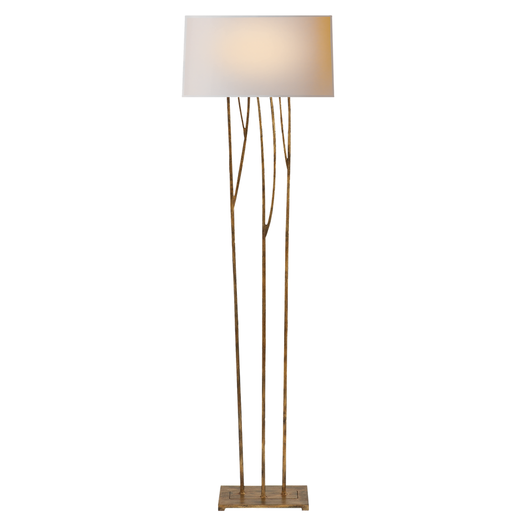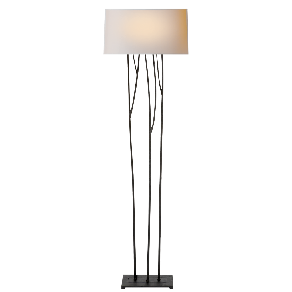 ASPEN Floor Lamp in Black Rust or Gilded Iron with Linen Shade.