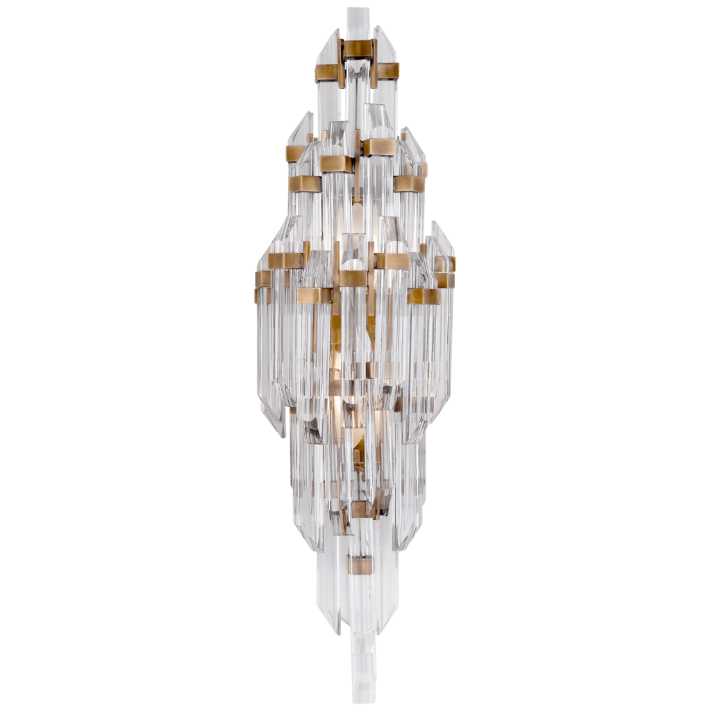 Adele Small Sconce in Hand-Rubbed Antique Brass with Clear Acrylic.