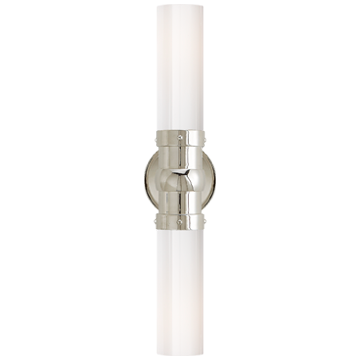 Graydon Double Bath Light in Polished Nickel with White Glass. IP20 rated as standard – please enquire about IP44 if required.