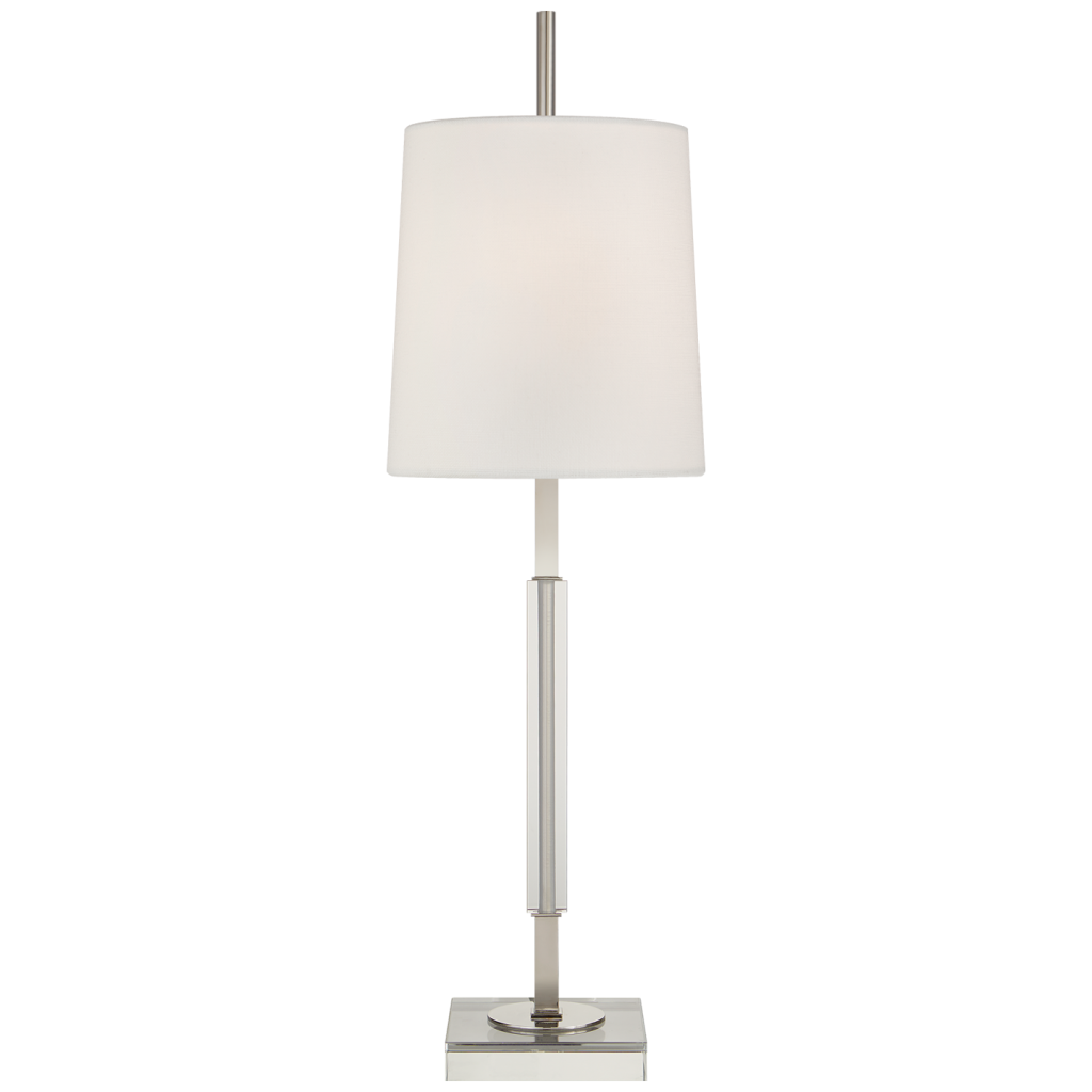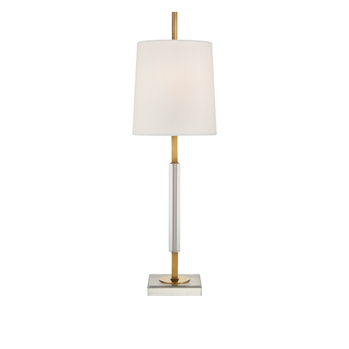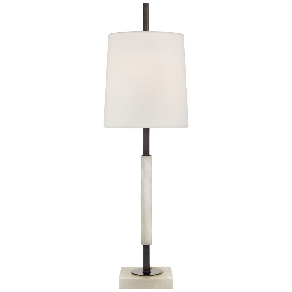 Lexington Medium Table Lamp in Hand-Rubbed Antique Brass, Polished Nickel or Bronze and Alabaster with Linen Shade.
