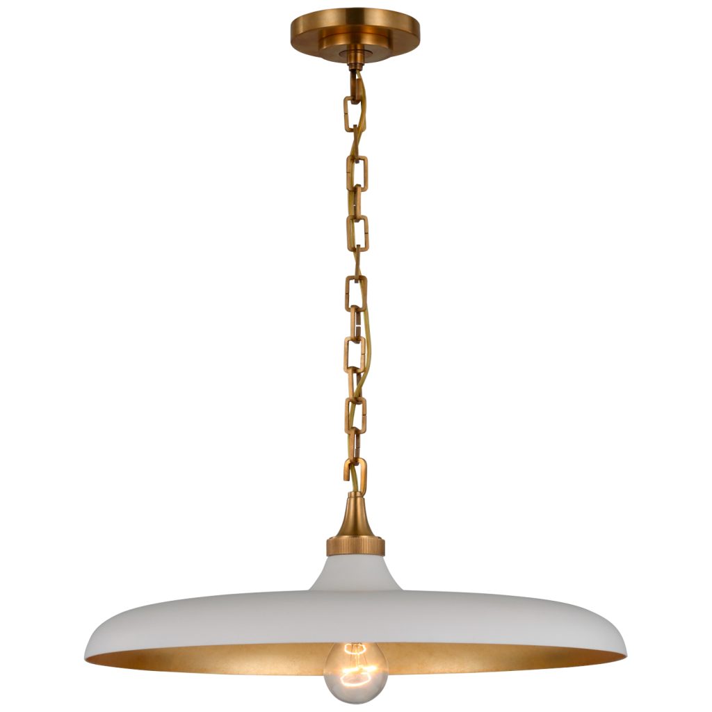 Piatto Medium Pendant in Hand-Rubbed Antique Brass with Plaster White Shade.